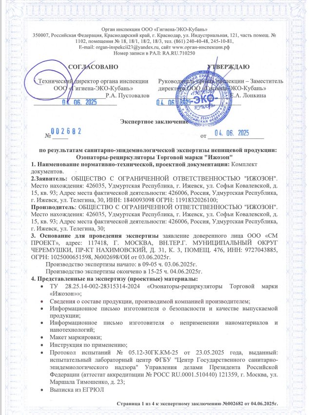 Профессиональный калькулятор озонаторов ИЖОЗОН